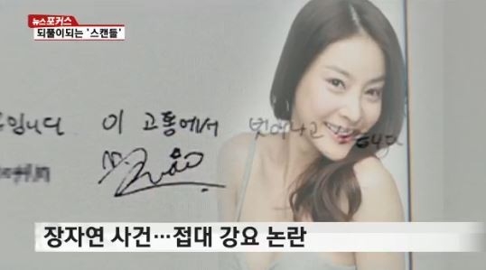 한편, 장자연은 지난 2009년 유력 인사들의 술자리 접대를 강요받은 내용을 폭로하는 유서를 남기고 스스로 세상을 떠났다.