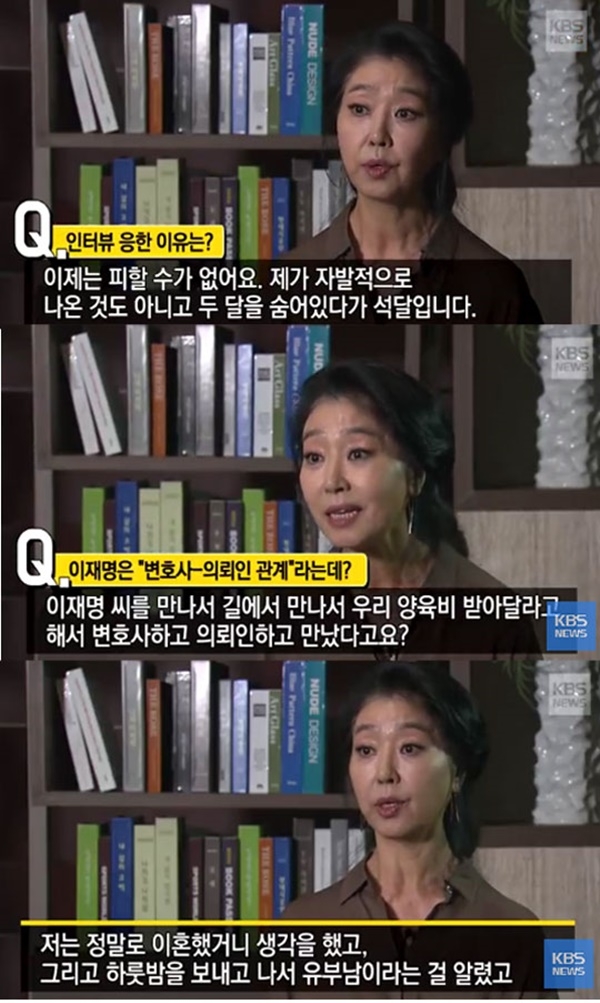 또한, 김부선은 KBS `9시 뉴스`와의 인터뷰에서 "변호사하고 의뢰인으로 만났다면 사무실에서 만나야지 왜 새벽에, 밤에 만나자고 하냐"고 이야기했다.