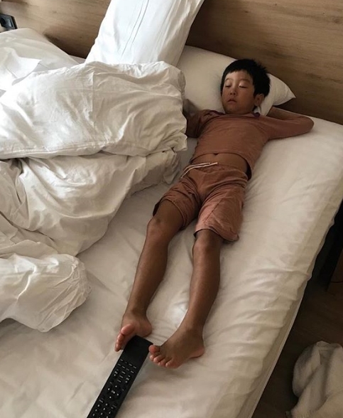 공개된 사진에는 침대에 누워 단잠을 자고 있는 서준 군의 모습이 담겨있다.