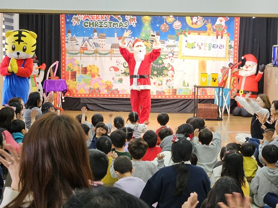 제주삼다수봉사대는 16일부터 19일까지 도내 장애아 전문 어린이집(별빛하나어린이집, 낮은울타리어린이집, 해안어린이집, 유진어린이집)을 돌며 크리스마스 케이크 만들기 체험, 마술쇼와 레크레이션 활동, 산타의 선물 전달 등 해피 크리스마스 봉사활동을 펼쳤다.