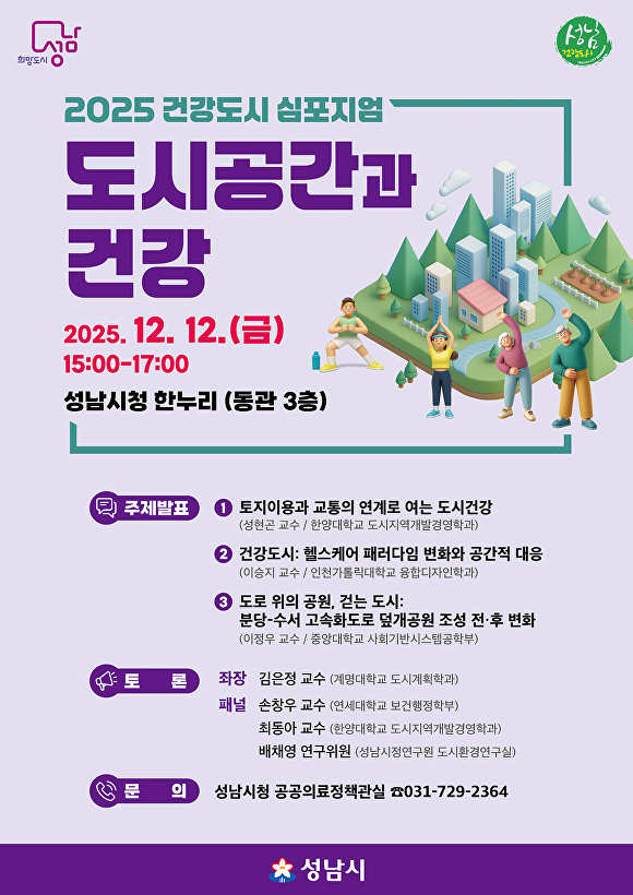 [조이뉴스24 양찬희 기자] 경기도 성남시는 오는 12일 오후 3시 시청 한누리실에서 ‘2025년 건강도시 심포지엄’을 연다고 9일 밝혔다.