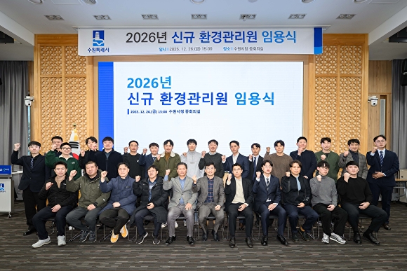 [조이뉴스24 양찬희 기자] 경기도 수원특례시는 지난 26일 시청 중회의실에서 2026년 신규 환경관리원 임용식을 열고, 신규 임용자 21명에게 임용장을 교부했다고 밝혔다.