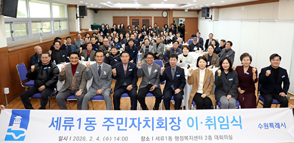한편 이날 이·취임식에는 이 의장을 비롯해 김미경 더불어민주당 의원(매교·매산·고등·화서1·2), 김은경 더불어민주당 의원(세류1·2·3·권선1), 국미순 국민의힘 의원(매교·매산·고등·화서1·2)과 주민자치위원, 지역 주민 등 60여 명이 참석해 세류1동 주민자치회의 새로운 출발을 함께했다.