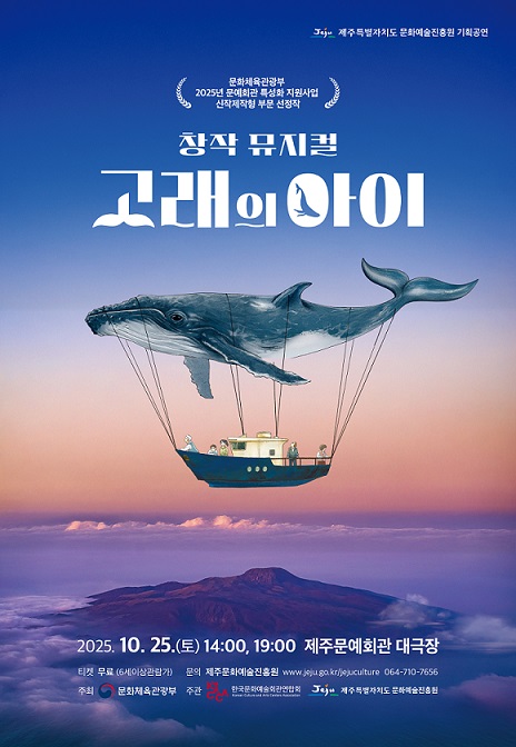 [조이뉴스24 배정화 기자] 제주문화예술진흥원이 한국문화예술회관연합회 주관 ‘2025년 문예회관 특성화 지원 사업 신작제작형’ 공모에 선정된 창작뮤지컬 ‘고래의 아이’를 선보인다.