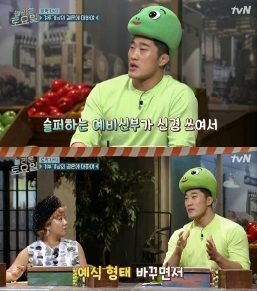 김동현과 예비신부의 전통혼례 웨딩화보에 박나래가 "너무 예쁘다"라고 칭찬하자 김동현은 "일이 좀 있었다"며, "(족두리를 하느라) 머리를 세게 당겨서 올렸는데, '무속인 같다', '연상 같다'는 댓글이 달려 예비신부가 상처를 받았다고 전했다.