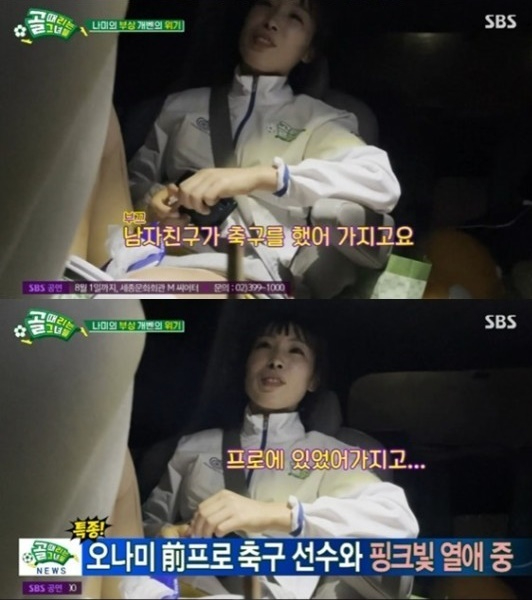 오나미는 최근 SBS 예능프로그램 '골 때리는 그녀들'에 출연해 2살 연하인 축구선수 출신 남성과 사귀고 있다고 고백했다.