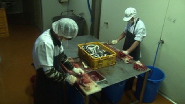 먼저, 불철주야 장어를 양식하는 사람들이 있다. 바로, 민물장어와 갯벌장어 양어장의 작업자들이다. 민물장어 양어장에 있는 장어만 20만 마리에 달한다는데~ 더운 양어장에서 장어를 크기별로 선별하는 작업도 여간 고된 일이 아니다. 비 오듯 쏟아지는 땀을 닦으며 장어를 선별하는 일은 온전히 작업자들의 몫이다. 특히, 장어 손질을 할 때에는 날카로운 칼에 손을 다칠 수도 있기 때문에 신경을 바짝 곤두세워야 한다. 민물장어 양어장에서 굵은 땀방울을 흘리는 작업자들을 만나본다.